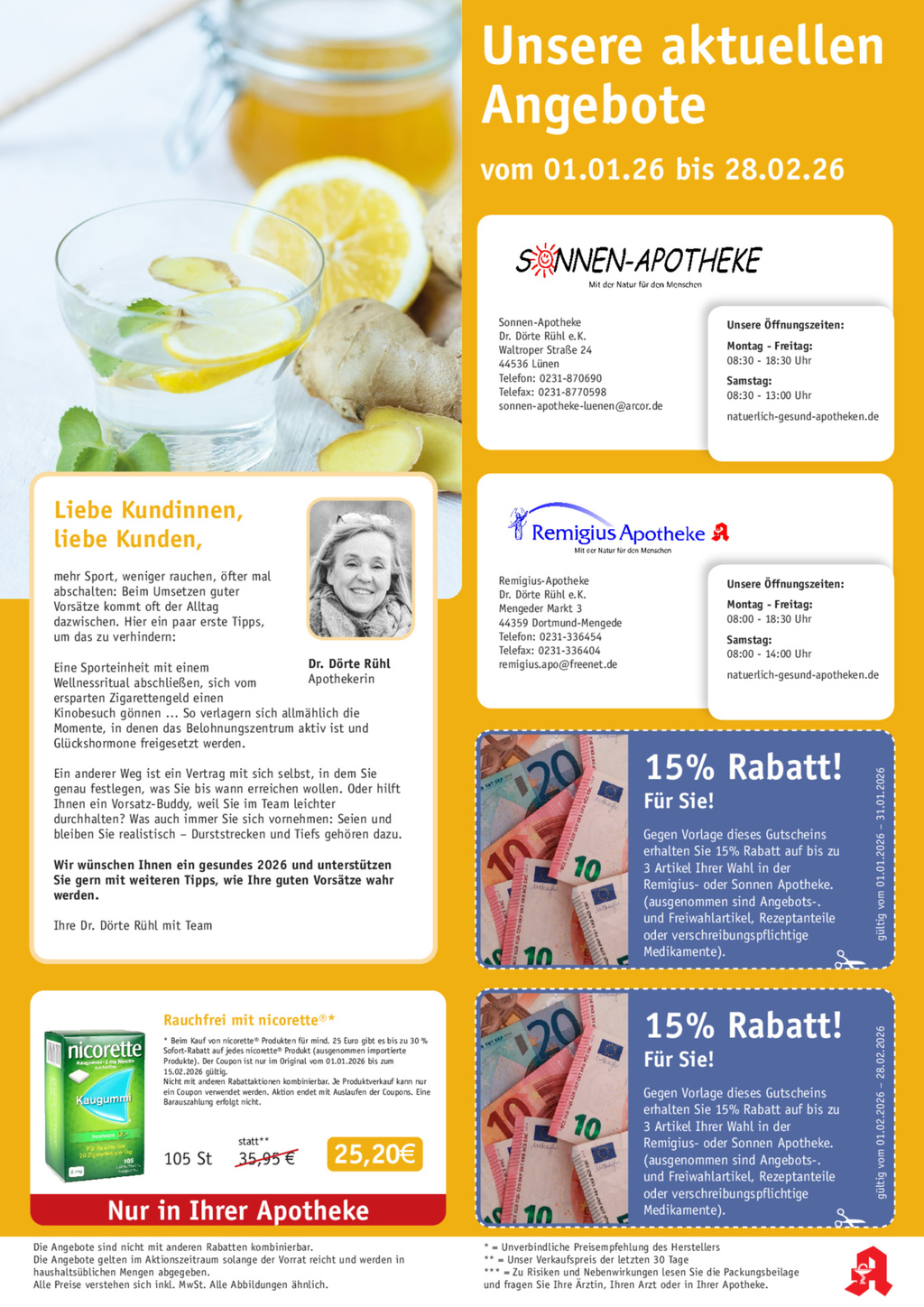 Unsere motivierten und freundlichen Mitarbeiter der Remigius Apotheke in Dortmund-Mengede und der Sonnen Apotheken in Lünen-Brambauer sind gerne für Sie da und freuen sich, Ihnen in Gesundheitsfragen weiterhelfen zu können.